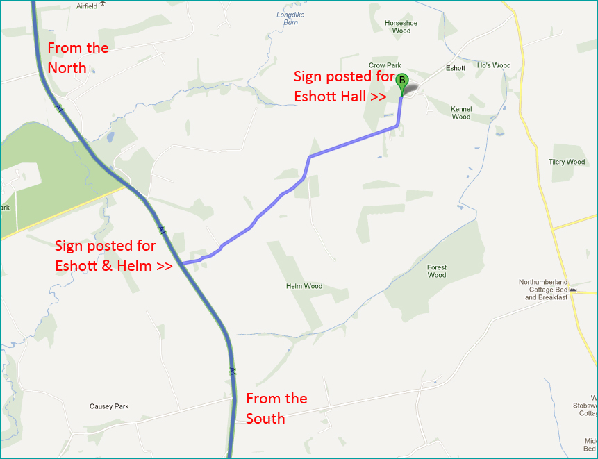 - Directions to Eshott Hall from Morpeth/the South. Click here.